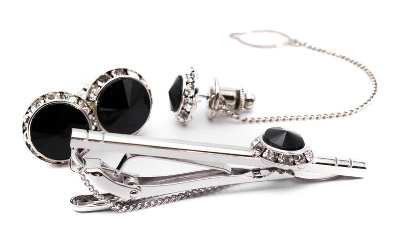 Black And Silver Crystal Men’s Accessory Box 4 Piece Collection Set