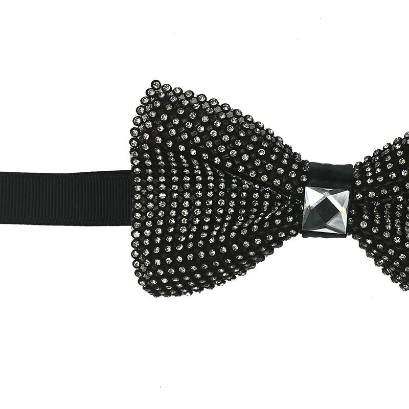 Black And White Sparkling Crystal Adjustable Men’s Bowtie Accessory Box