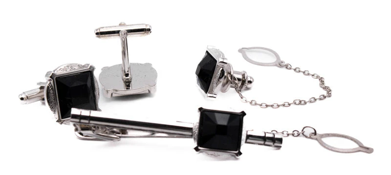 Black Square Crystal Men’s Accessory Box 4 Piece Collection Set