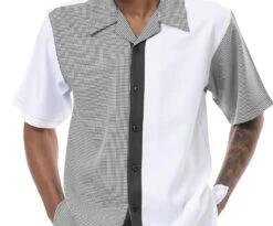 Black Symmetry Pattern Walking Suit 2 Piece Short Sleeve Set With Shorts
