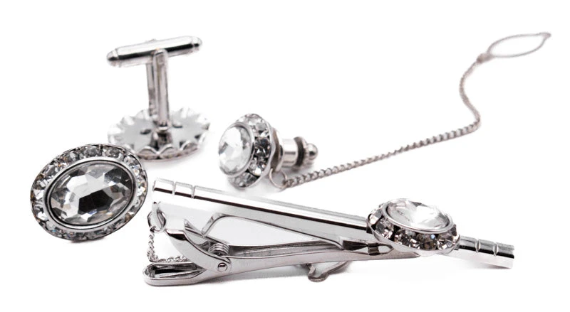 Crystal Silver Men’s Accessory Box 4 Piece Collection Set