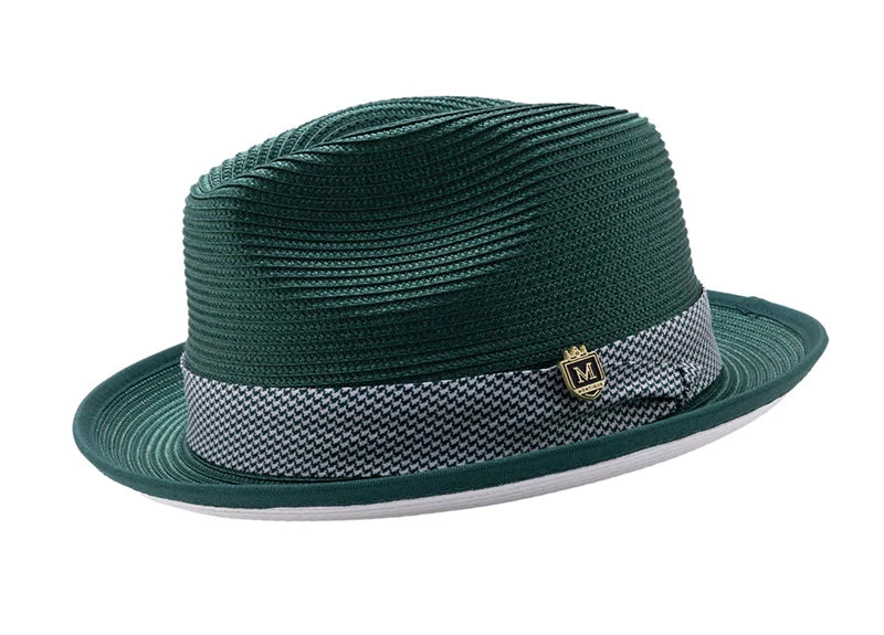Emerald Green Braided Stingy Brim Pinch Fedora With White Bottom