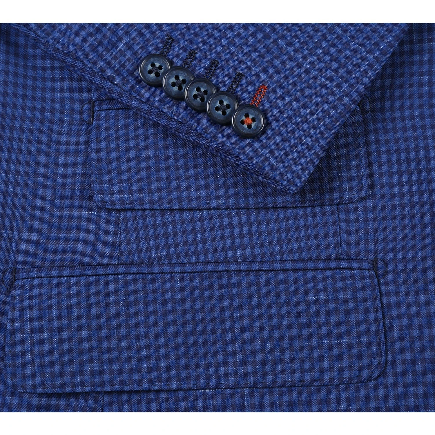 This stylish men’s suit in blue mini-check combines a classic color scheme with a well-tailored design with premium wool blend material.
