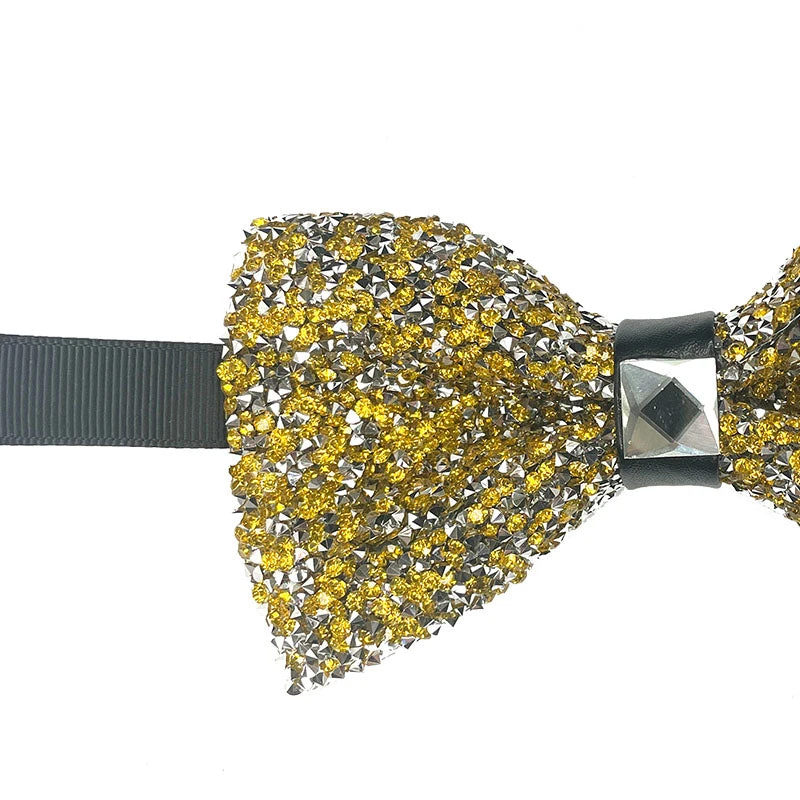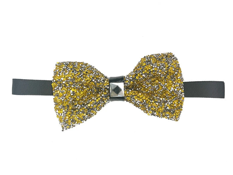 Gold Sparkling Crystal Adjustable Men’s Bowtie Accessory Box