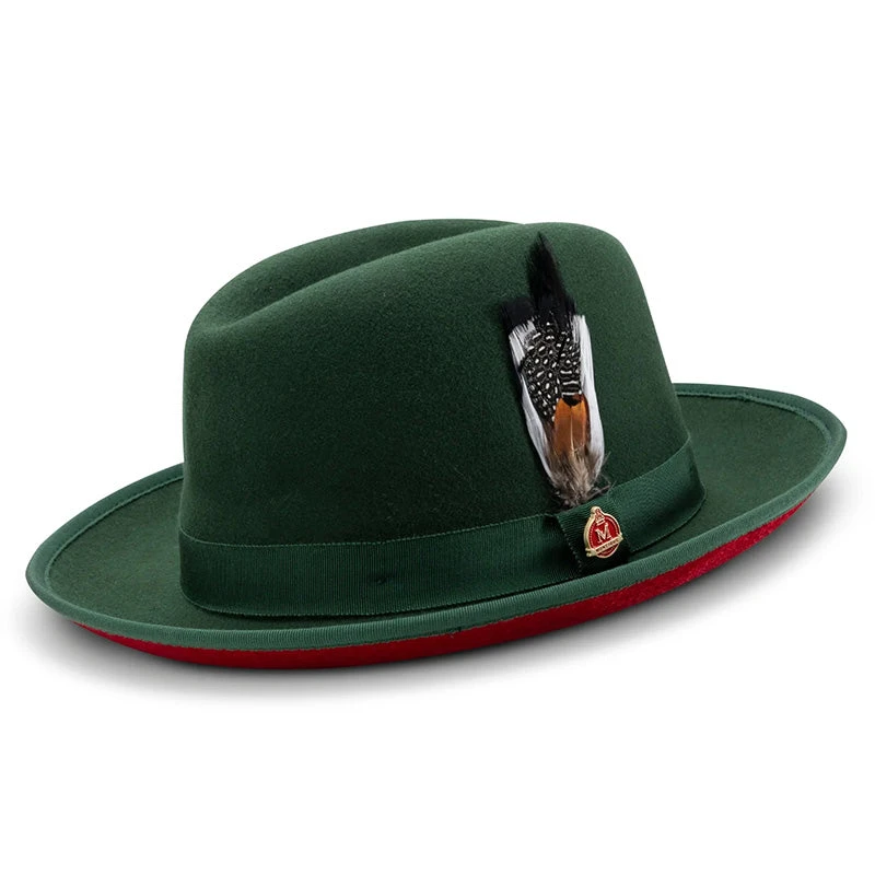 Hunter Green 2 ¾” Brim Red Bottom Wool Felt Dress Hat