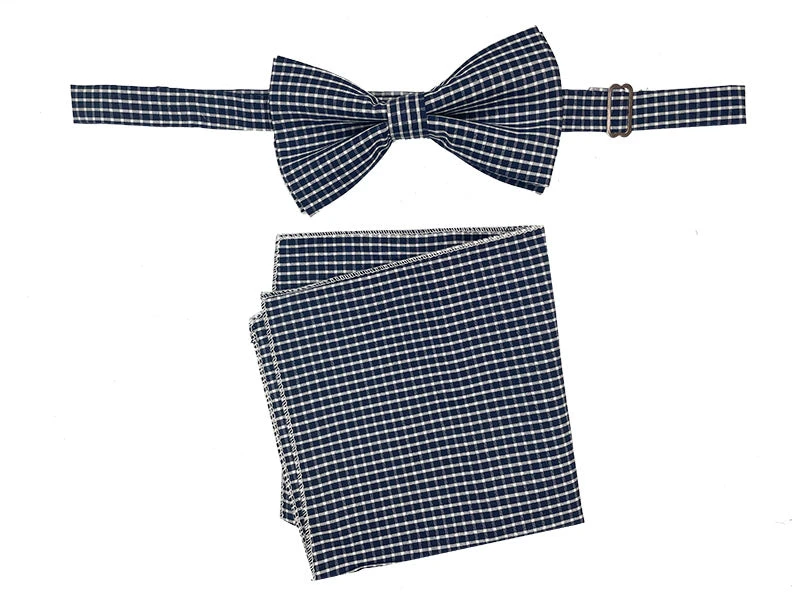 Men’s Bowtie And Hanky Accessory Set In Navy Plaid