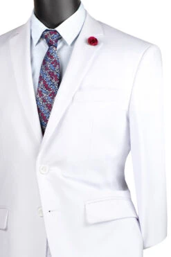 Nola Collection – White Regular Fit 2 Piece Suit Flat Front Pants With 2″ Elastic Waist Band