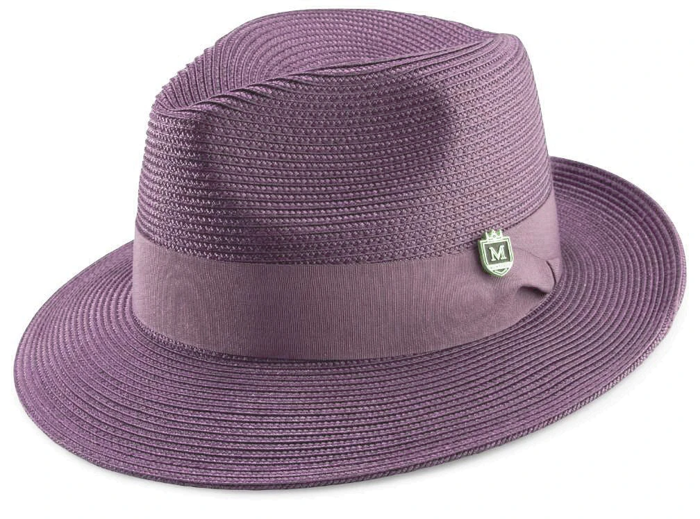 Purple Braided Wide Brim Pinch Fedora Matching Grosgrain Ribbon