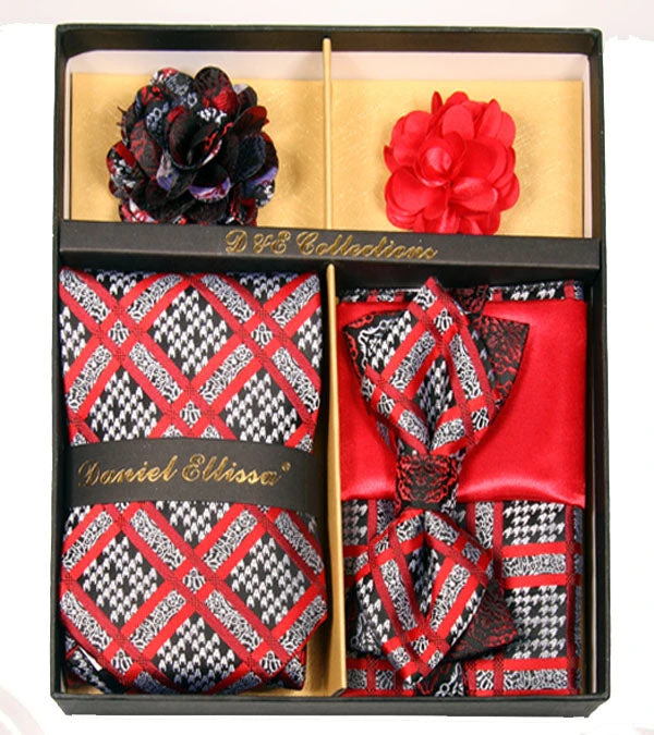 Red And Check Pattern Men’s Accessory Collection Box 6 Pieces Set