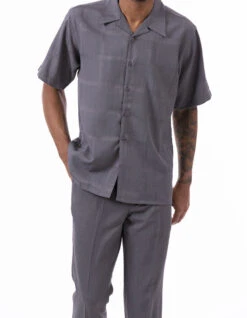 Burgundy Tone On Tone Vertical Stripes Walking Suit 2 Piece Short Sleeve Set With Shorts